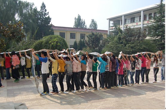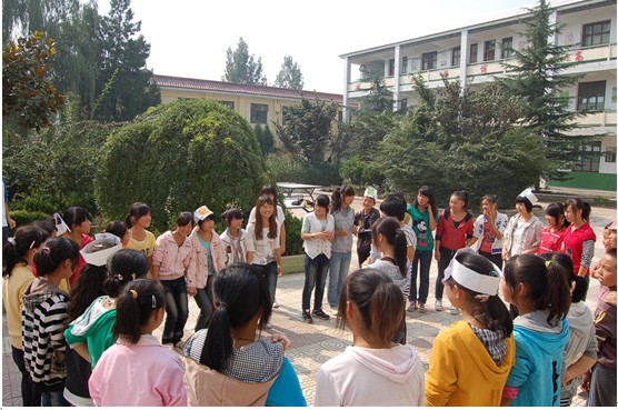 9点30分左右,回访活动正式开始,此次回访活动主要采取素质拓展训练模式,首先我们将孩子们和老师分为两组,并给予一些时间让他们确定队长,口号,队歌。在一阵阵的掌声中,两支队伍大声地喊出了自己的队名,口号,唱出了各自激情的队歌。整齐而又洪亮的声音将团队协作的精神风貌很好地展现了出来。