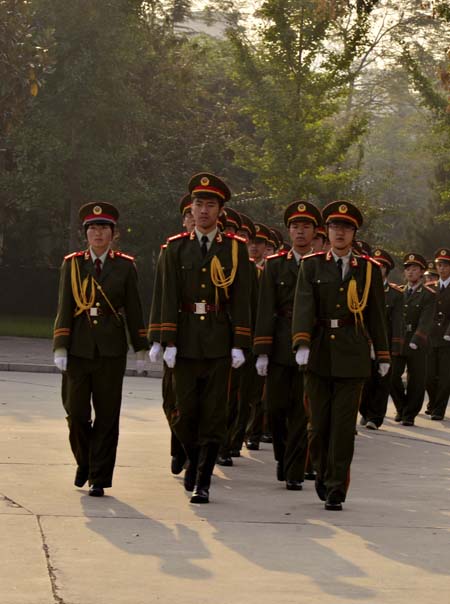 据了解,西安理工大学国旗护卫队成立于1997年7月1日,至今已走过了14个年头,吸引了十四届的大学生在这里忘我的奋斗,为国旗奉献青春与激情。目前护卫队的23名队员都是从各院经过层层选拔出来的精英分子。