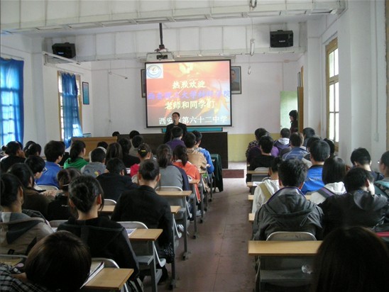 本报讯 2011年10月15日下午四点,材料学院团委在西安市第六十二中学开展了以“感知大学---走进中学”为主题,面向该校高三学生的励志演讲交流活动。材料学院团委书记郝鹏老师,第六十二中学教导处、政教处、团委相关负责人及高三近百名同学出席了此次互动。