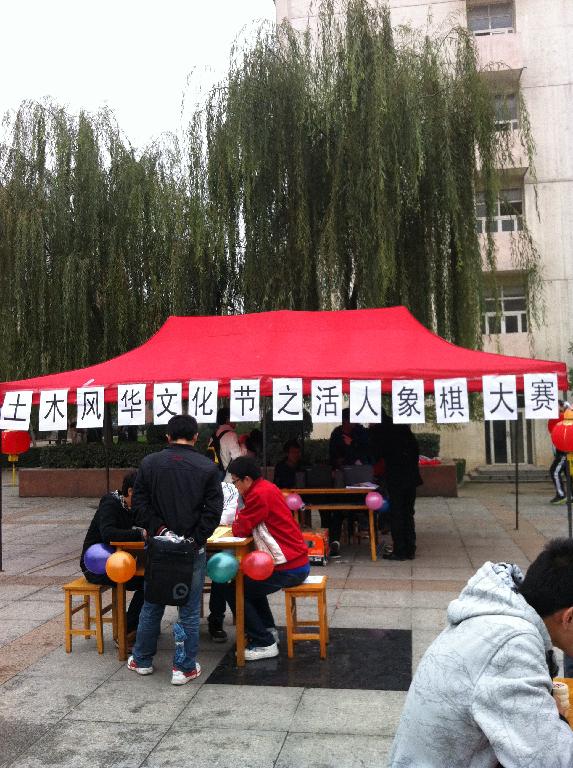本报讯 纹屏乐道,乐在其中,横车纵马,胜负你操。为了使同学们对象棋艺术得到进一步了解,丰富同学们对象棋文化的认识,创造一个人人喜爱棋艺术、棋文化的氛围。2011年11月16日至18日,由土木建筑工程学院团委学生会组织部主办的首届“土木风华”文化节之活人象棋大赛在三餐厅门口及逸夫科技楼前火热举行。