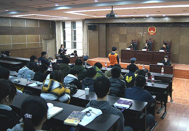 首先由书记员宣读法庭规则,先由审判长进行了开庭准备,核实了被告人刘伟的身份,询问刘伟是否申请回避,然后进行法庭调查,根据公诉方与辩护方的陈述归纳争议焦点,就争议焦点进行调查,举证,质证,认证,最终查清事实,然后进行了激烈的法庭辩论,就调查清楚的事实如何适用法律双方展开辩论,然后休庭进行合议庭评议,最后作出判决并宣告。整个庭审过程严肃有序,法律系同学的逼真演绎令现场观众赞叹不已,活动结束后,法律系张老师作了简要点评,肯定了同学们的充分准备与精彩的表现,但也中肯的指出了一些问题。西部法制报的资深编辑也发表了自己的意见,提出了许多有用的建议。