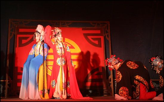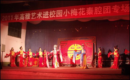 本报讯 “生是杨家兵,死是杨家将”,11月21日晚上,激荡人心的唱腔回荡在校园的上空。由陕西教育厅主办的2011年高雅艺术进校园活动走进我院,陕西省戏曲研究院小梅花秦腔团的100多名演员在学院大学生活动中心精彩演绎了青春版秦腔历史剧《杨门女将》,为全院师生奉献了一场高雅艺术盛宴。