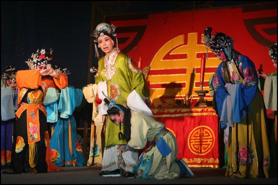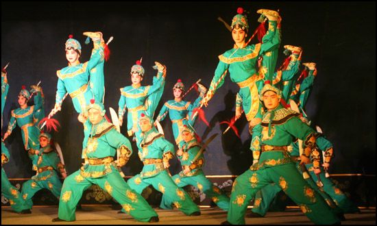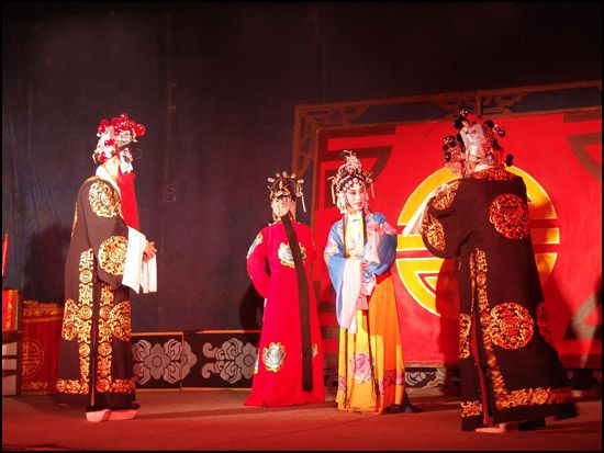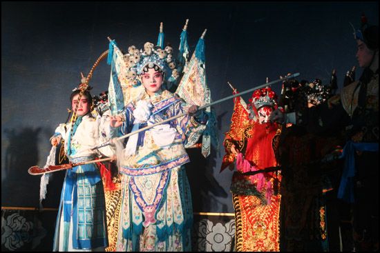 演出主要分为“寿堂”、“灵堂”、“校场”、“交兵”、“运筹”、“探谷”和“决战”7场。情节跌宕起伏,出场人物个性鲜明,从寿堂惊变到比武出征,由敌焰嚣张到决战奏凯,演员唱腔优美,舞台场景生动,人物服饰华丽,频频博得观众的喝彩。佘太君的豪情里流露着精忠爱国之气,穆桂英的智慧英勇中渗透着国仇家恨,整个杨门女将散发着青春进取的朝气,激发着现场观众的爱国热情和团结进取的民族精神。观众自始自终沉浸在剧情当中,时而鸦雀无声,时而掌声不断。