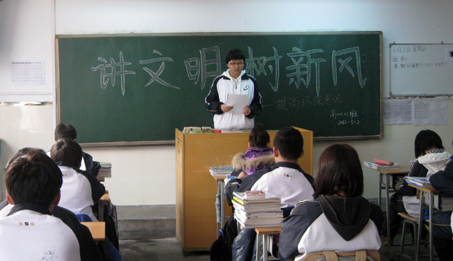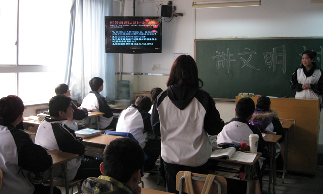 据丁老师介绍,该班在开学第一周的升国旗仪式上,向全校发出了“讲文明 树新风 做贡献”的活动倡议,反响不错。附中党委书记兼副校长江晓梅表示,这项教育活动旨在弘扬中华美德、建设和谐文化,注重实效,深受全校师生好评。