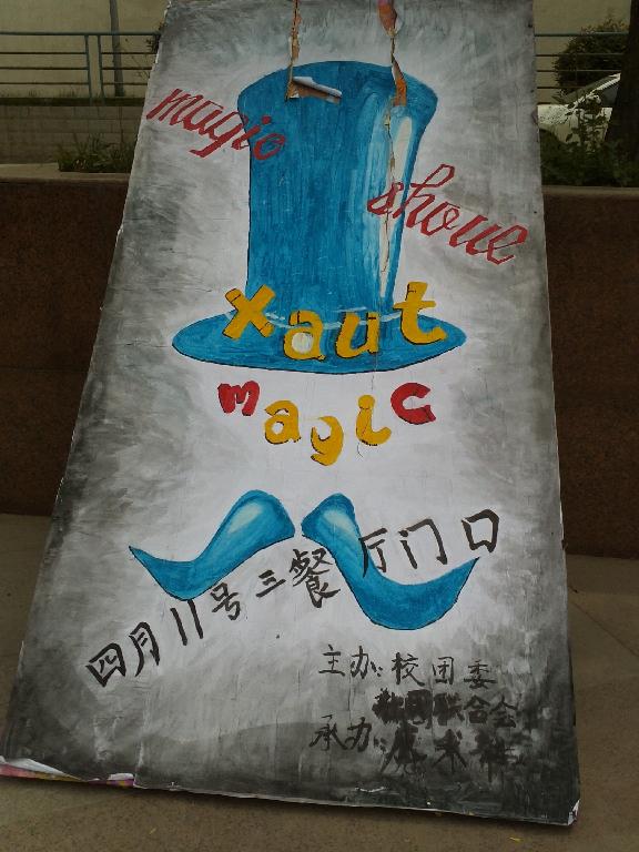 本报讯 4月11日11时30分,西安理工大学魔术协会于曲江校区三餐厅广场举行魔术表演。本次活动除了本校魔术协会外,还邀请了陕西科技大学魔术协会、医学院魔术协会,和思源学院魔术协会前来表演。
