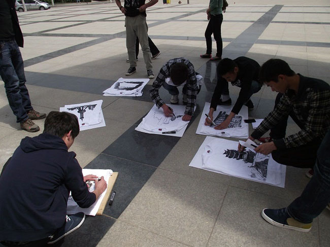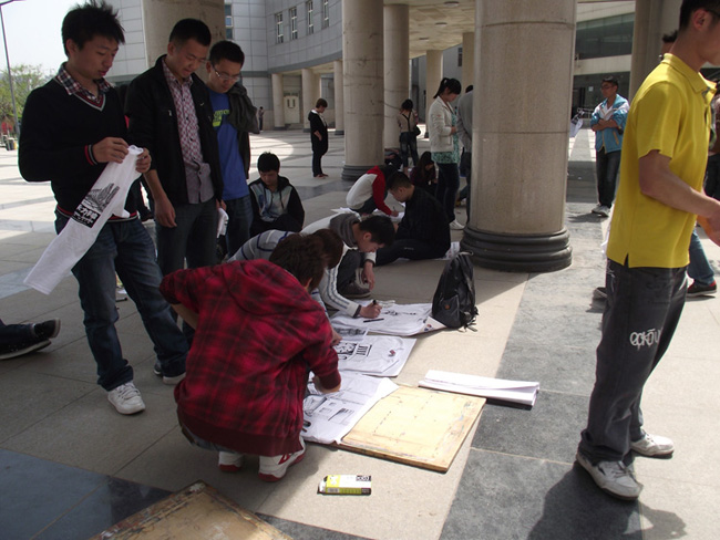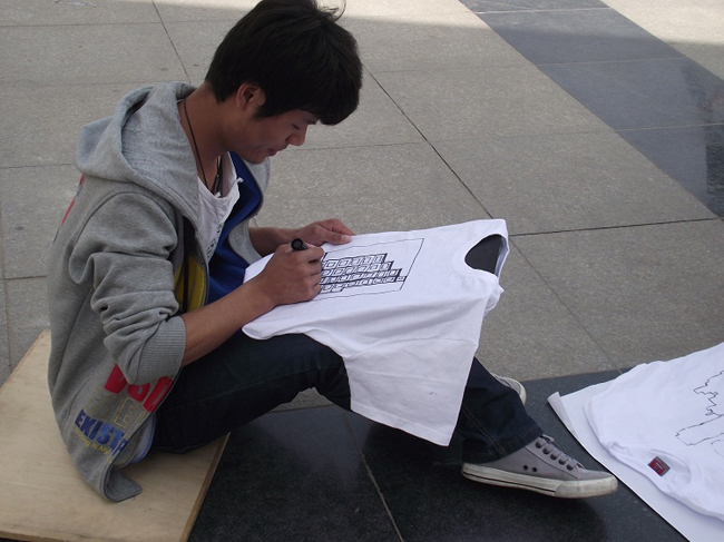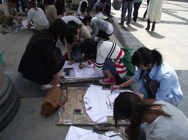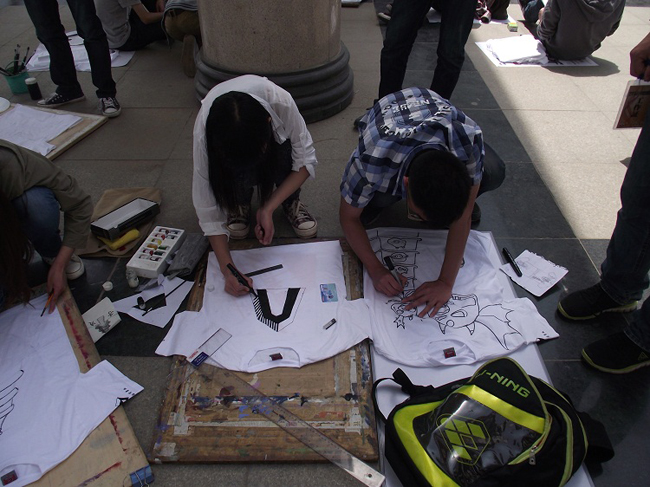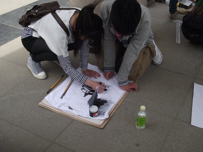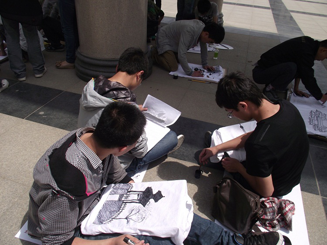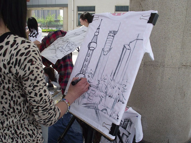 本次“绘衫秀”活动的主题是“世界旅行梦想”,以世界各地名胜建筑为内容进行绘画。大家围绕主题自由发挥,彰显自己的个性,体现个人的青春活力。现场气氛活跃,引来众多同学围观并讨论。