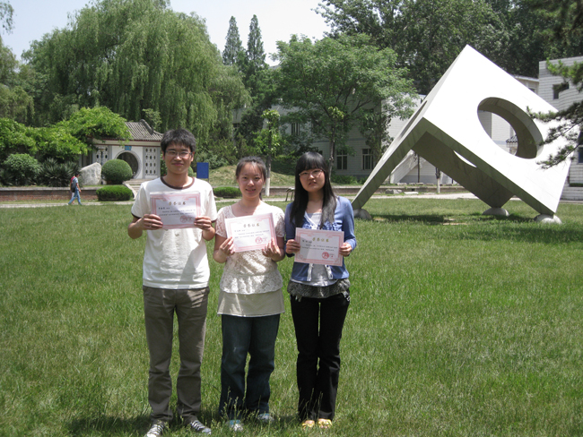 一等奖获奖者合影。左起:牟金贵、宋汶珈、郭珍。