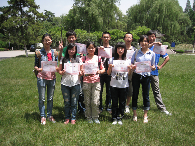 本报讯 5月15日中午1点,第五届“读书观影”有奖征文活动获奖作品作者在校报编辑部领取了获奖证书和奖品。本次征文活动共决出特别奖一名,一等奖三名,二等奖十名,三等奖六十名。颁奖结束后,获奖作者在教二楼前合影留念。