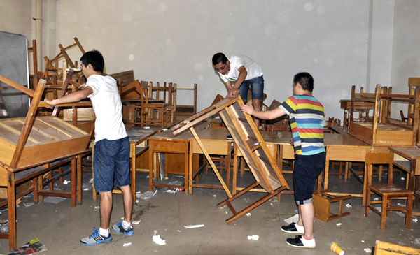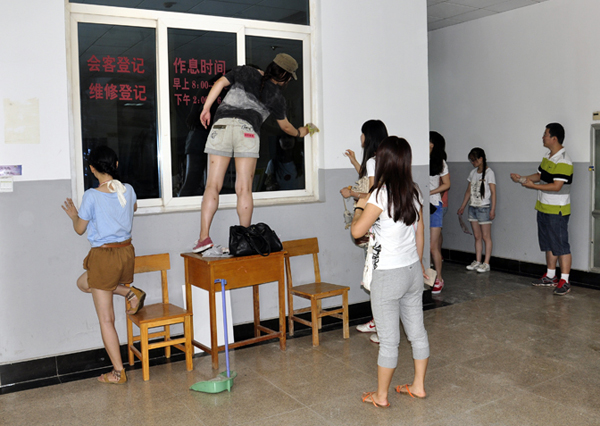 本报讯 6月14日,艺术与设计学院2008级全体毕业生在逸夫科技楼广场集合,他们要在离校前为母校做点实事。