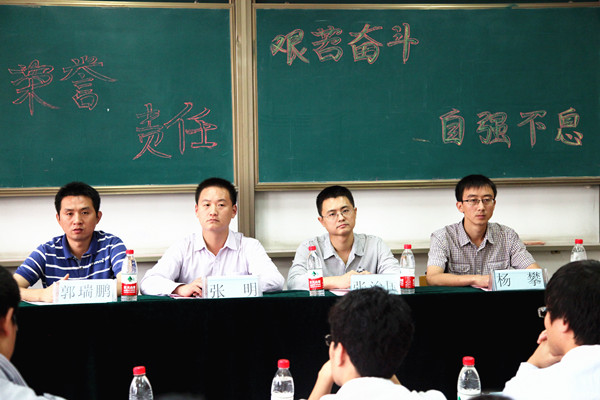 经济与管理学院团委书记郭瑞鹏宣读了第十一届社团联合会主席团成员名单,并与校团委组织部部长、社团联合会指导老师张明、理学院团委书记杨攀及水利水电学院团委书记张治国为十一届主席团成员7名同学颁发了聘书。随后,第十届社团联合会副主席张望同学作工作总结报告,张明老师及第十一届主席刘梦同学发言。张明老师强调,在今后的发展中,我校社联人员更需加强团结沟通、提高管理效率,防止“TNT篮球赛”等特色项目淡化,强化自己的品牌。