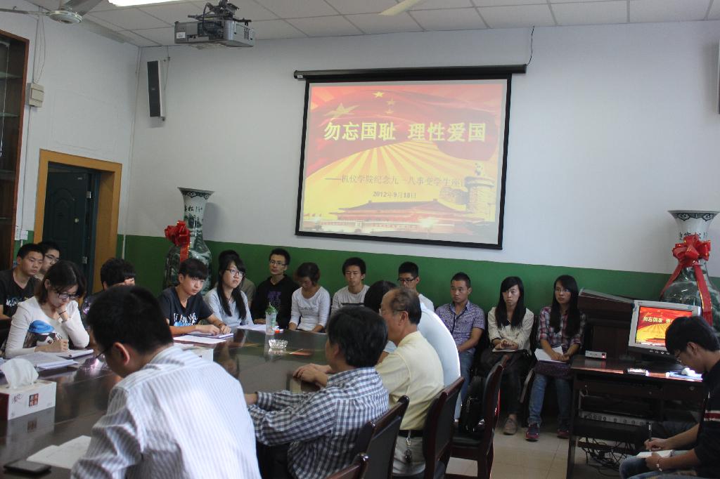 本报讯 9月18日,下午四时,机仪学院举行了“与院长书记面对面”活动暨“勿忘国耻,理性爱国”座谈会,院长华灯鑫教授、院党委书记傅卫平教授、副书记副院长邢凯老师、院团委书记赵崇阳老师与学院32名学生代表参加了本次会议。