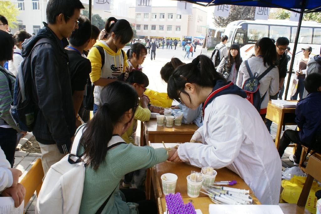 本报讯 在经过前期的大力宣传和精心筹备以及举办的爱心公益晚会,土木建筑工程学院院联合陕西省红十字会于10月30日在曲江校区举行了造血干细胞样本采集活动。