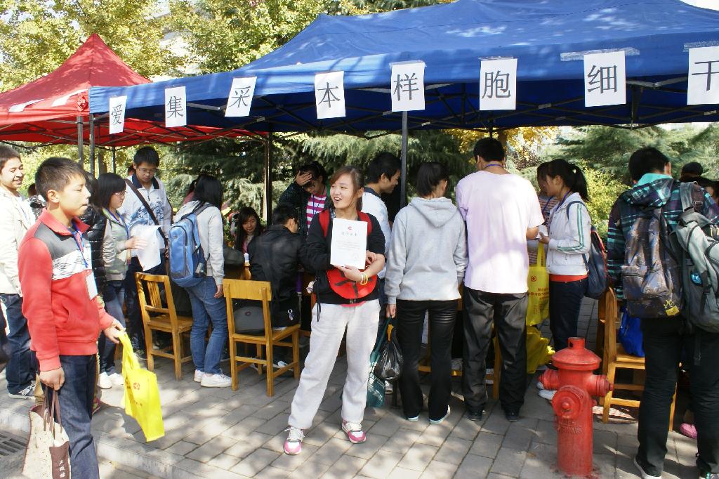 在现场,捐献同学首先填写信息表,在同学们采集完样本后,志愿者服务队给每个采集者颁发证书及纪念品。