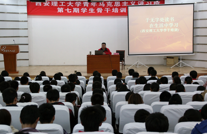 本报讯 11月4日下午2点半,我校青年马克思主义讲习所第七期学生骨干培训班在曲江图书馆报告厅召开,校团委特邀请陕西财富广播《长安夜话》栏目主持人力闻老师作“于无字处读书,在生活中学习”报告。