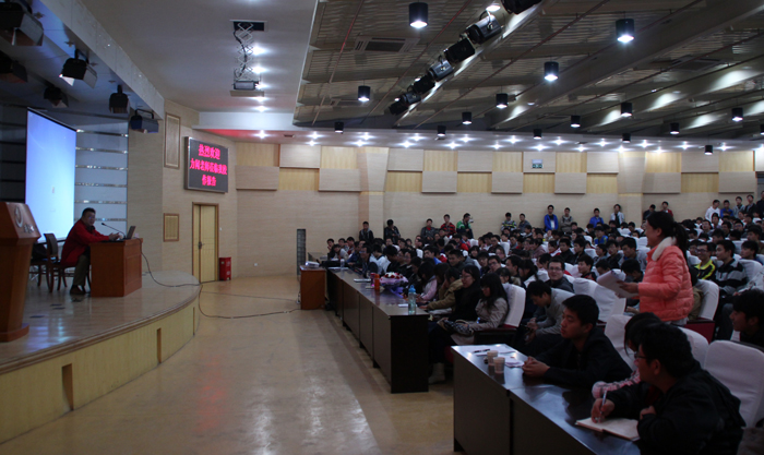 力闻老师讲话风趣幽默,举例恰当,不失文采。报告会现场座无虚席,过道里也坐满了人。报告期间,同学们热情高涨,掌声不断。