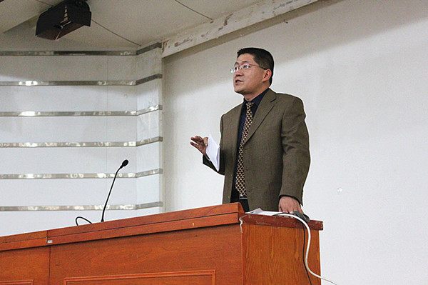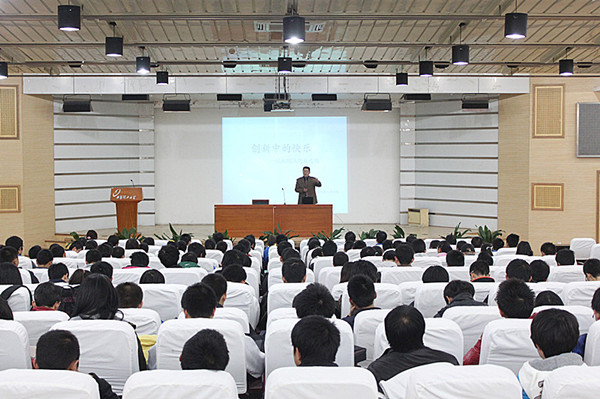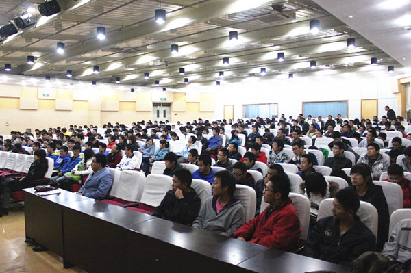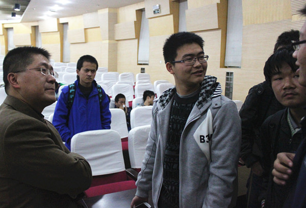 侯浩录老师在报告中阐述了自己对于幸福的定义—“愉快工作,快乐生活”,接着为大家介绍了我校航模队屡败屡战励志艰难的成长历程以及在刚刚结束的2012年科研类全国航空航天模型锦标赛所取得的骄人战绩。侯老师说,校航模队在成长过程中遇到很多难题,尤其是与其他学校相比没有扎实的专业知识,但是大家敢想敢做不怕被别人笑话,一次次的失败并没有让他们退缩,因此,他们成功了。对于要做什么,老师讲,首先一定要对航模有兴趣才行,要充分利用所学的知识进行创新制作,当然也要参加比赛提升自己,并举出了几位在航模创新方面优秀人物的例子。老师提到加入航模队有以下好处:提高自己的动手能力,提高组织管理能力,可以更好的应用专业知识,提高与他人、其他团队的沟通能力。他号召大家要敢想敢做,凡事都是从陌生到熟悉,勿以事小而不为,并以航模队几经风雨坎坷辛酸的发展路,以及最近网上的热门话题“为爱筑天梯”为例,告诉大家,只要努力,定能收到回报。