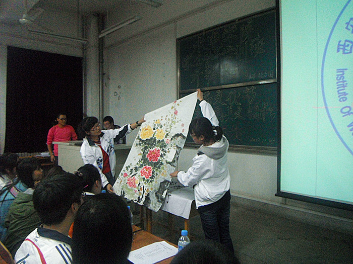 活动分为作品赏析、作品点评、评委打分三个环节。作品赏析环节最为重要,长篇美文、短篇美文、书法、绘画四类作品展示穿插进行。其中美文类以PPT形式展现,舒缓的音乐附上朗朗的诵读声,在青春的画面下给在场的同学一种“恰同学少年”的感受;书法参赛者笔走龙蛇,挥毫泼墨,在现场描绘艺术的快乐;摄影作品异彩纷呈,给人一种视觉上的冲击与震撼;水墨画、油画、素描、国画等美不胜收。评委组由学校各类学生组织同学担任,本着公平、公正、公开的原则对作品进行了评比。
