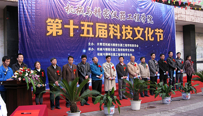 本报讯 11月16日下午,机械与精密仪器工程学院第十五届科技文化节在金花校区大学生活动中心前开幕。学生处处长马宁、校团委书记田小平等14位嘉宾和机仪学院领导、学工办辅导员、学生导师、参赛学生参加了开幕式。