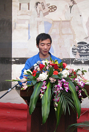 机仪学院副院长高峰致辞,他强调了科技节的重要意义并希望学生们积极创新,踊跃参加科技节,也希望机仪学院的教师们继续努力,为科技节做出贡献。2012年全国大学生航空航天模型锦标赛中全国一等奖获得者乐启红代表参赛学生发言。