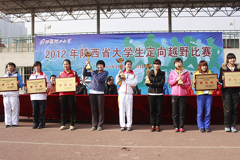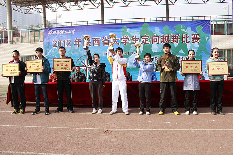 2012年陕西省大学生定向越野赛男子团体总分第一名:我校、西安体育学院(并列),第二名:西安工程大学,第三名:西安文理学院;女子团体总分第一名:我校、西安体育学院(并列),第二名:西安工程大学,第三名:宝鸡文理学院;总团体总分第一名:我校、西安体育学院(并列),第二名:西安工程大学,第三名:宝鸡文理学院。