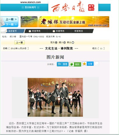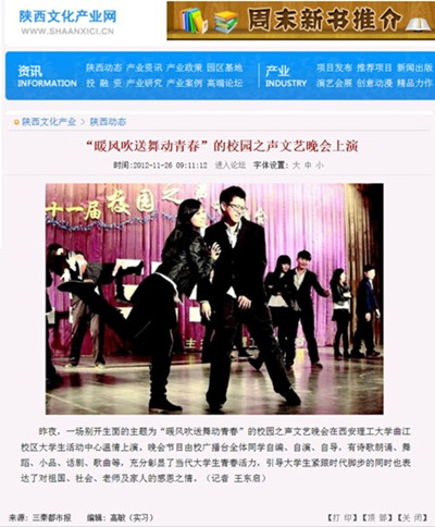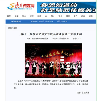 晚会旨在贯彻落实党的十八大精神,积极营造和谐健康的校园文化,所有节目由校广播台全体同学自编、自导、自演,充分展现了我校学子的青春活力。当日,《华商报》、《西安日报》、《陕西日报》和《三秦都市报》等西安多家媒体对本次晚会进行了报道。此外,“西安新闻广播电台”和“西安交通广播电台”对本次晚会也做了相应报道。