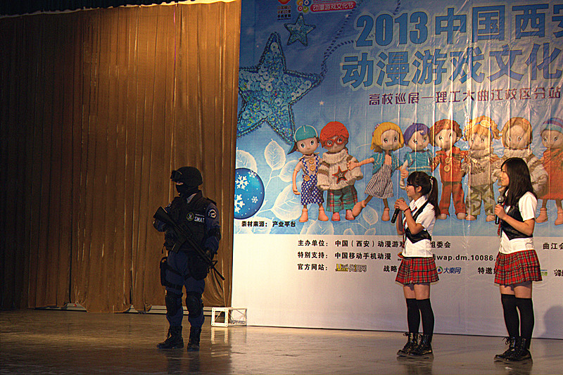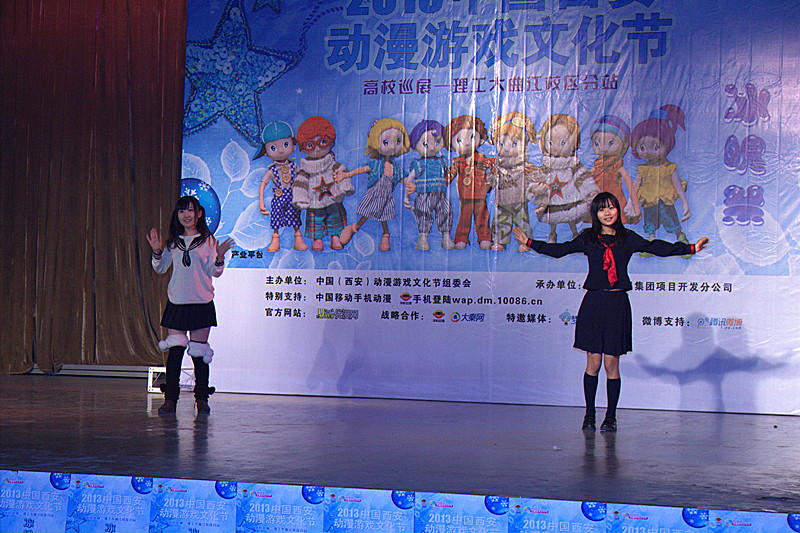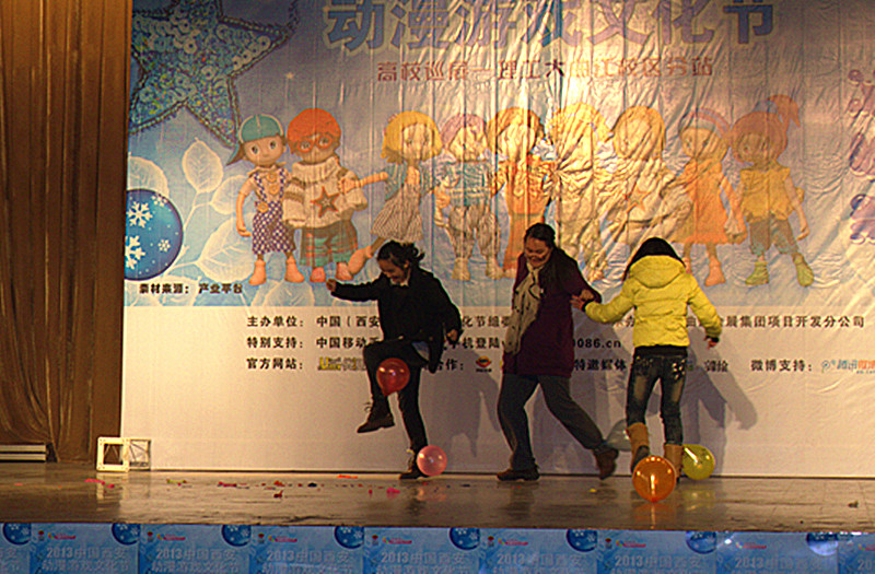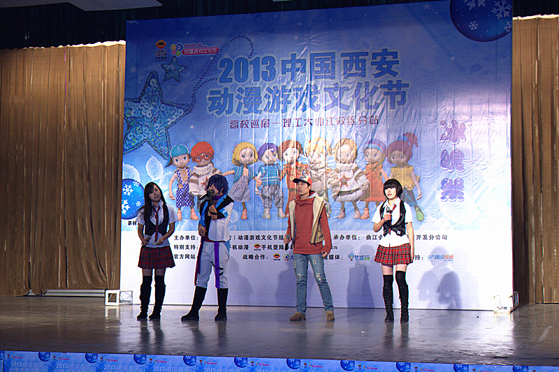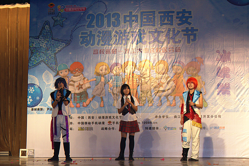 参加本次漫展的有一百多名来自西安文理学院、西安财经学院、欧亚学院、西北大学等高校的同学。漫展以一段精彩的AKb48舞蹈开场,同学们表演了各自准备的精彩节目,有歌之王子殿下、卫龙、歌舞串烧等,有现场互动游戏环节,包括转圈跳杆、绕口令、绕障碍物运送乒乓球、“吃蛋糕”等。活动最后还有精彩的coseplay表演。现场,热爱动漫的同学相互交流,欢声笑语不断。