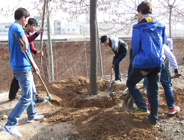 在此背景下,曲江管理处和土木建筑工程学院团委联合举办了本次“移栽树木,绿化校园”的活动。在工作人员的协助引导下,大家有序领取铁锹、铲子等工具,按工作人员的要求进行移树。大家互相帮助,共同协作。移栽现场呈现出一片热火朝天的繁忙景象,充满了春意盎然的气氛。