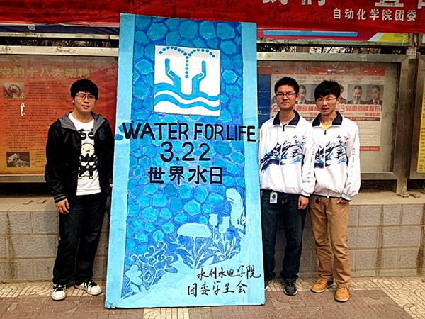 今年的世界水日主题为“水合作”(Water Cooperation)。我国纪念13年“世界水日”和“世界水周”活动的宣传主题为“节约保护水资源,大力建设生态文明”。宣传小分队通过宣传板、飞信、人人网以及宣传单、现场咨询讲解等丰富多样的形式对水日精神进行宣传。活动现场,前来了解的同学细心聆听,小分队的同学认真讲述。活动使同学们理解了水资源的重要性,同时学到了一些节水小窍门。