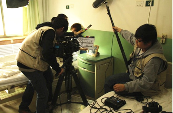 剧组全体成员早八点从学校出发前往陕西省武警医院进行影片拍摄。十点左右完成准备工作正式开机。拍摄过程中,全体成员尽心尽责做好自己的工作。徐云同学更是敬业,甚至没来得及吃中午饭。整个拍摄过程进行顺利,一直持续到下午四点半收工。