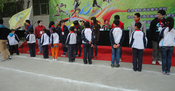 志愿者组成的方阵参加了秦北小学第二届春季运动会开幕典礼。在开幕式上,我校“关爱蒲公英,点亮未来星”活动主席张波代表志愿者发言,预祝运动会圆满成功。随后,“粉笔爱心支教”代表队接受秦北小学授旗,孩子们为志愿者系上红领巾。最后,“粉笔爱心支教”志愿者团团长丁鸿代表志愿者演讲,表明希望通过志愿活动为孩子们带来温暖和爱心。