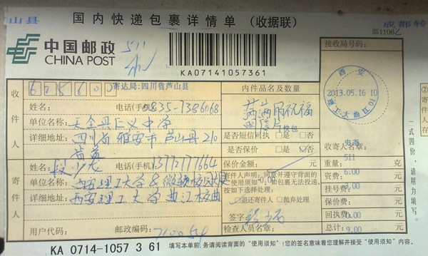 活动结束当天下午,雅安书写祝福的明信片已经统一寄往雅安。此次活动会通过”壹基金“支付宝为地震灾区送去0.5+0.5=1元的捐款,之后通过主页公示。