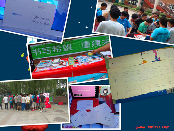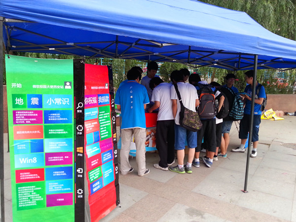 此次活动, 每有一名同学参与体验并填写明信片,微软团队捐出5毛钱,并由微软大使通过自己的工资捐出5毛,合计1元,既参与者每参与体验就会为地震灾区的同胞捐出1元钱,为雅安祈福。活动现场共收集到335条理工大学子对于雅安受灾群众的真切祝福,话语虽短,但对于他们意义非凡。