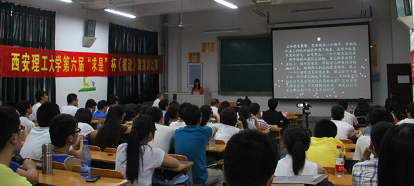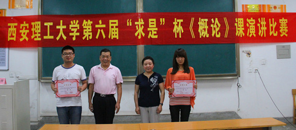 本报讯 6月2日,由西安理工大学思想政治理论课教学科研部《毛泽东思想和中国特色社会主义理论体系概论》课教研室主办的西安理工大学第六届“求是”杯《概论》课演讲赛在教10楼218教室举行。比赛评委由思政部老师担任,我校教学督导耿俊生、刘亚丽教授作为特邀嘉宾出席。