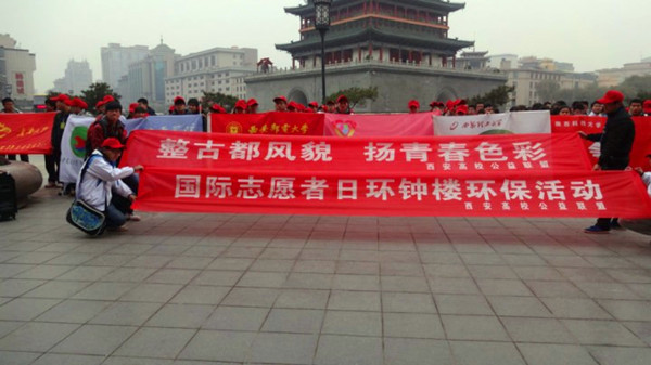 本报讯 2013年12月8日,“整古都风貌,扬青春色彩”国际志愿者日环钟楼环保活动在钟楼举行。此次活动的参加者有:西安理工大学、西安交通大学、西安邮电大学、西安医学院等各大高校环保公益爱好者。