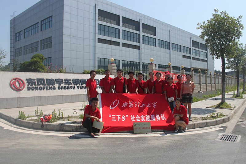 7月15日早9点,举行了经济与管理学院驻十堰市大学生社会实践服务基地挂牌仪式。东风神宇车辆有限公司对“第一先锋队”的到来表示热烈欢迎,并表示会全力配合其工作,“经济与管理学院社会实践服务基地”正式在此挂牌。随后, 东风神宇车辆有限公司的相关负责人带领“第一先锋队”参观了装配车间,介绍了汽车制造的基本过程及各个细节。最后,“第一先锋队”的全体人员参观了检验车间,了解了各项指标的测试流程。朱老师感谢东风神宇车辆有限公司对本次调研活动的积极配合和热情接待。