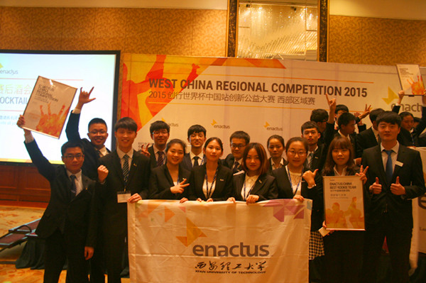 本报讯 4月17日,Enactus创行世界杯中国站创新公益大赛西部区域赛在成都举行。我校Enactus团队创立于2013年10月,作为陕西省第11支成立的新团队首次与来自西北大区、西南大区的23支团队共同参加比赛。经过激烈角逐,西安理工大学Enactus团队荣获创行创新公益大赛中国站区域赛三等奖,同时荣获创行中国最佳新团队奖。