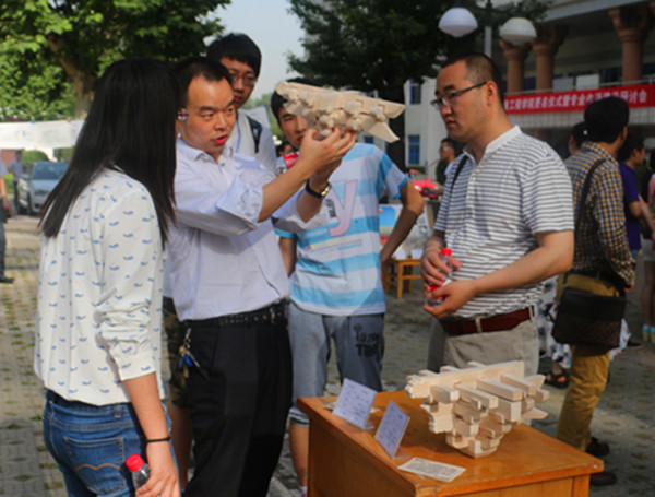 19日清晨,展板就已经搭在广场上了,建规系的同学就忙碌着将自己在课程中设计的建设方案、城区规划、建筑设计图纸及实物模型展示出来,供全校师生观看、欣赏。在这些展品中,有房屋、别墅等的设计,还有一些同学们平时描绘的素描和水彩等。同时,大一至大四同学的作品均有展出。此次作品展览也引起了学院领导的重视和关注。其中学院领导、院长等人专门前往观看、欣赏,同学们积极的向老师们、领导们介绍各个图片、作品的意义等。
