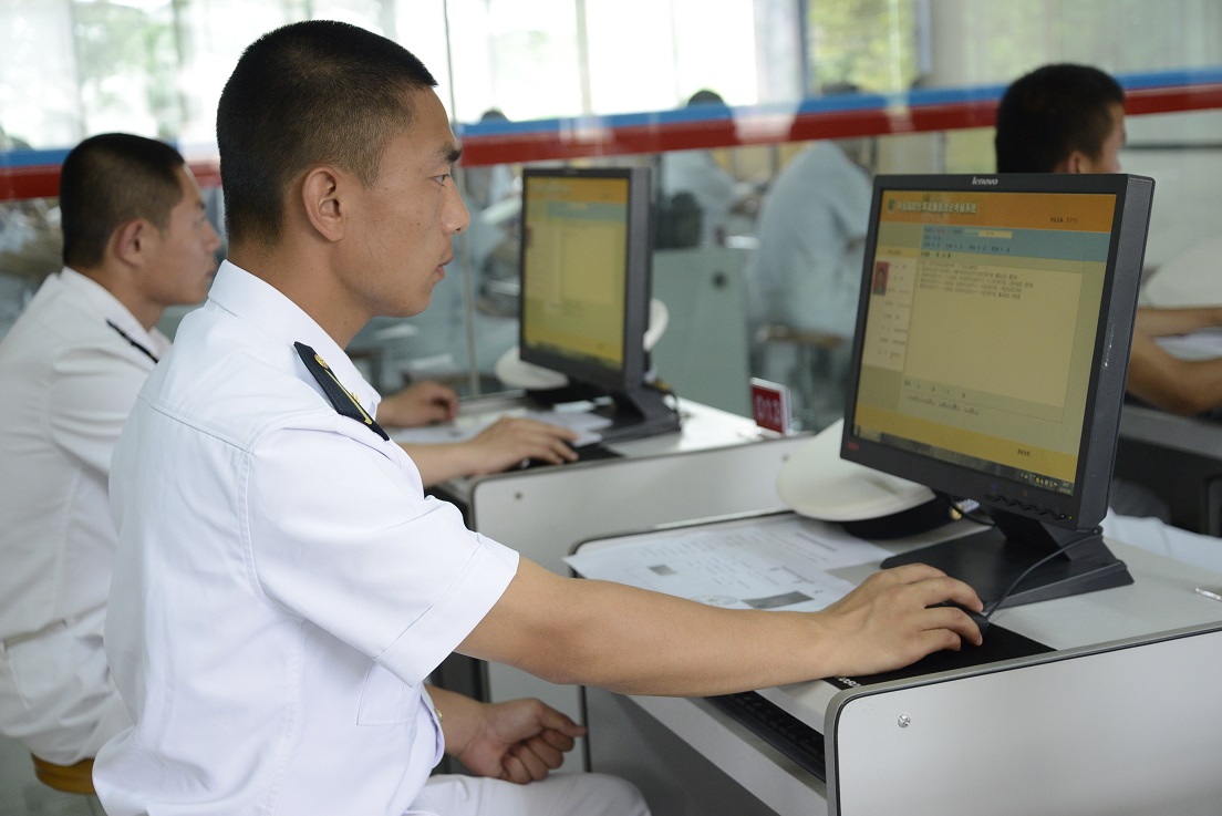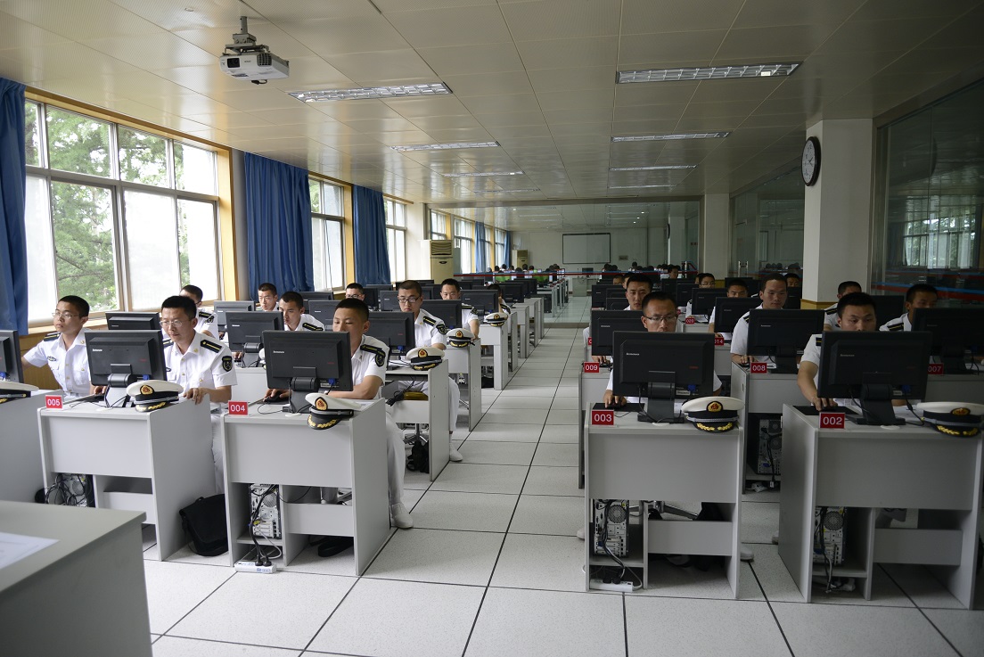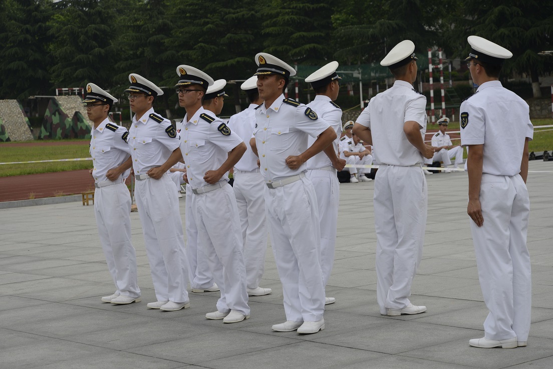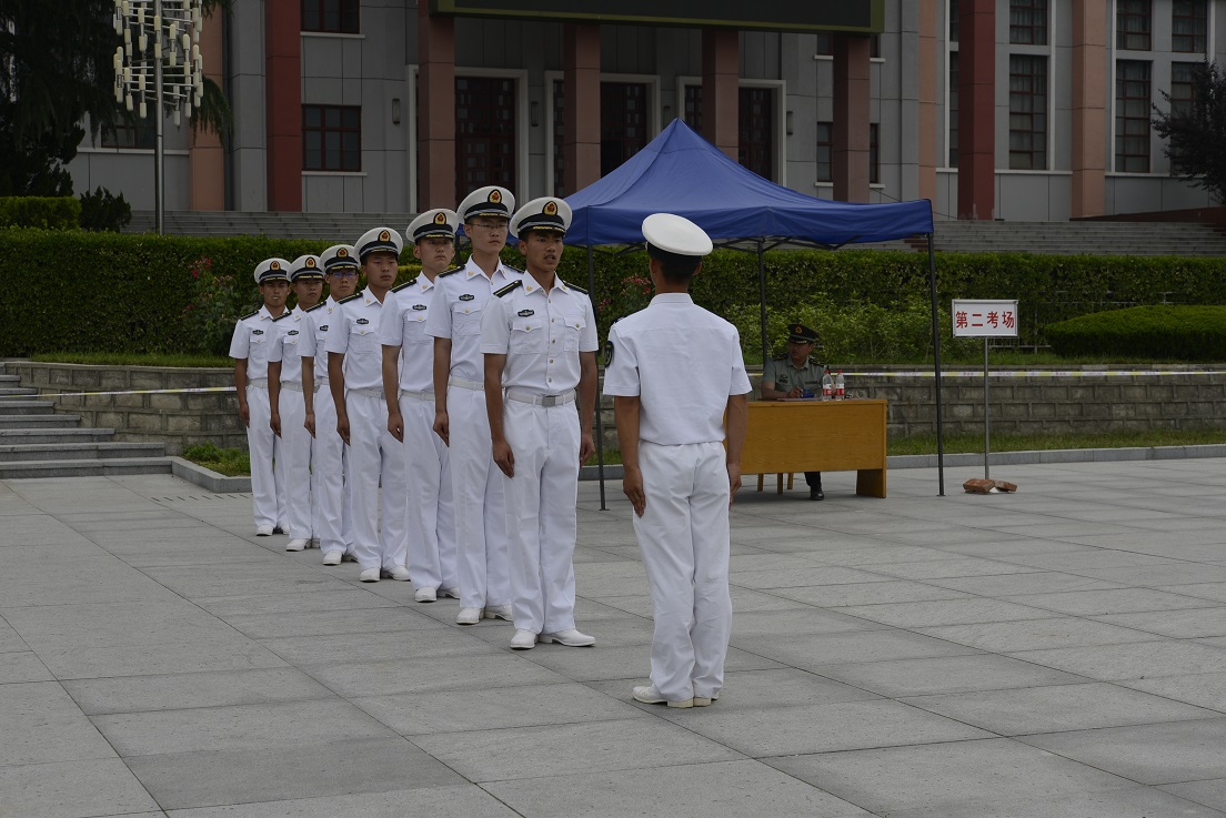 不知不觉,时针指向下午3点钟。随着最后一名国防生提交试题离开机房,军政理论考核圆满落下帷幕。在军政理论考核中,国防生们严格遵守考场纪律,仔细思考,认真答题,取得了全面通过、均分良好以上的成绩。俗话说,“进门看内务,出门看队列”,队列水平的高低优劣,不仅反映了军人军事素质的强弱,更是对军人意志品德最直观的表现。深谙于此的学员们卯足了劲儿,个个力求将动作做到最好。所有人在带队班长的指挥下,都能高标准、严要求的完成考官们下达的各项考核任务,报数声震耳欲聋、靠脚声铿锵有力、行进间步调一致、站军姿肃穆庄严。就连边防学院的一些路过考核场的教职员工都不禁驻足观看,拿出手机拍照留念。那一抹抹亮白的军装更是闪耀着海的光芒,像一朵朵洁白的浪花,在边防学院镌刻下西理工2011级海军国防生们不悔青春、携笔从戎的铮铮誓言。