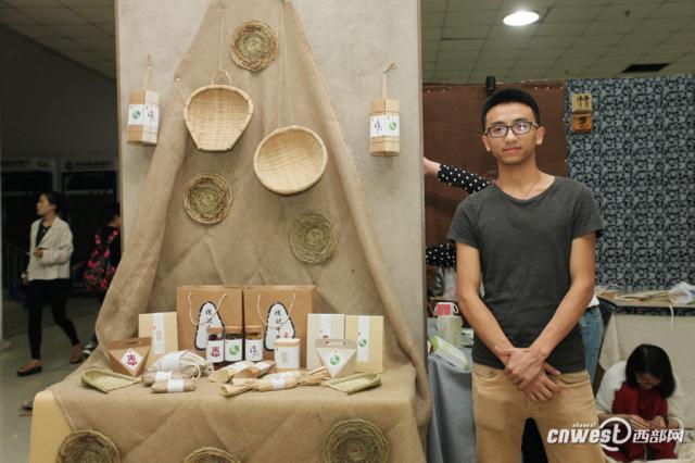 包装装潢专业的陈超同学展出的是干果系列包装,他用麻、牛皮纸等素色包装材料来强化干果的原生态。