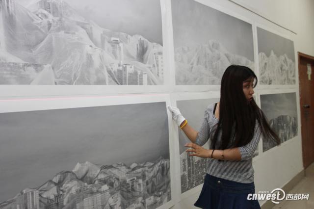 摄影专业张慧株同学正在布展,她的作品叫《裹》,她说,现在的城里被雾霾包裹,被各种各样有形无形的东西包裹。