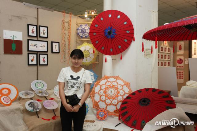 视觉传达专业的朱卉同学做了许多漂亮的伞,她给她的作品取名《竹生花》,朱卉说,中国传统伞的骨架就是用竹做成的。