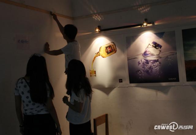 摄影专业的同学在布展,这组作品拍摄的是《住在校外的大学生》。