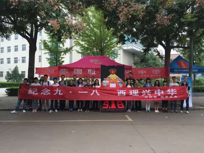 此次系列活动分曲江、金花两个校区,由多个组织分别举办。其中我校人文与外国语学院为纪念“九一八事变”、缅怀革命先烈,召集全院大一新生前往西安革命公园进行参观、追忆。我校学生会举办“纪念九·一八 西理兴中华”宣传活动,学生们主动在条幅签下自己的名字,铭记祖国当年的屈辱史。我校自动化院学生会也通过宣传板展示,号召大家勿忘国耻。在我校金花校区,校研究生会也悬挂“勿忘国耻,铭记9·18”等字样条幅,来表达他们对于国家苦难日的牢记。同时,我校校报也通过微博平台参与线上讨论交流、转发等方式参与网络纪念活动。
