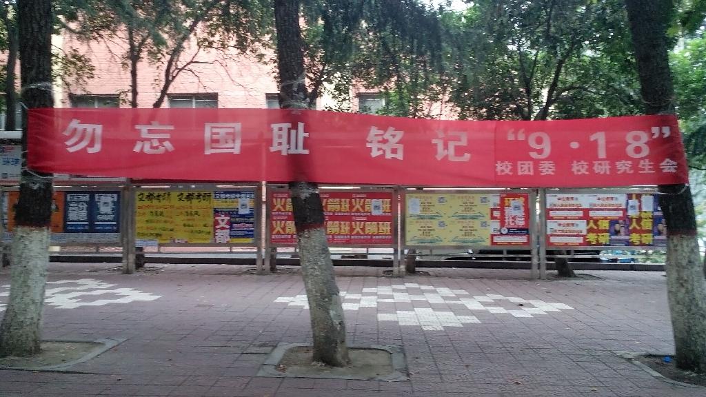 今年的9月18日是“九一八事件”84周年,正值抗日战争胜利七十周年,使得这个日子更加不同寻常。早上十点城市上空便响起了尖锐的防空警报。同时我校也举办了多种形式的系列纪念活动。