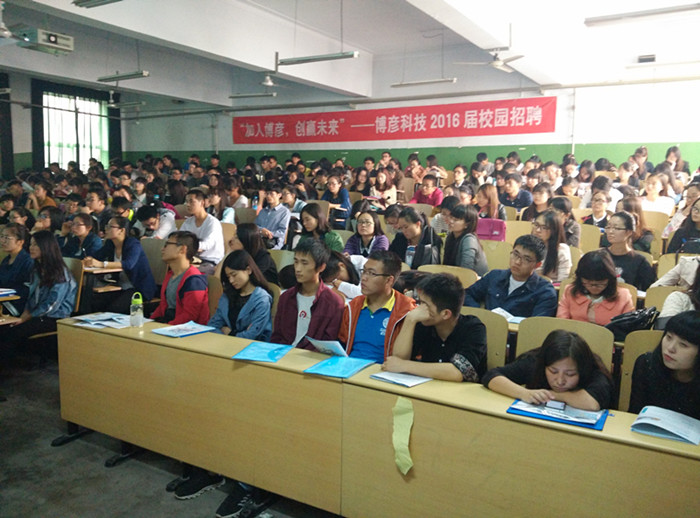 本报讯 10月19日下午,博彦科技股份有限公司共十人来到我校教2-301举行校园招聘会,其中包括上海招聘经理孟津京,北京项目经理李云轩,武汉校企合作经理徐建平以及人力资源部各招聘人员,整场会议由李云轩经理宣讲。