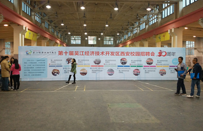 本报讯 10月24日上午,第十届吴江经济开发区西安校园招聘会准时在我校体育馆召开,来自吴江经济开发区的33家高新技术企业(其中包括多家世界500强企业、台湾韩国等地上市企业、总投资超1000万美元以上企业)来到我校进行校园招聘。