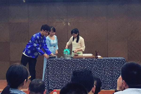 随后,六如轩茶艺馆的茶艺师为师生带来精彩的茶艺表演,分别为大红袍的茶艺表演和浪漫音乐红茶茶艺表演。表演深谙茶文化的底蕴,为大家展现了一场精妙绝伦的茶艺表演,引得大家阵阵掌声。紧接着,活动进入学生体验的环节,茶艺师手把手教同学煮茶、品茶,散发出优雅温柔的气质,赏心悦目。茶艺讲座让起源于中国的茶文化得到了传播,开拓了师生视野。