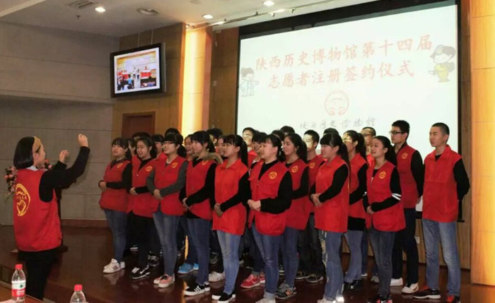 本报讯 11月22日上午,陕西历史博物馆第十四届志愿者签约仪式顺利举行。此次仪式,邀请到西安交通大学,陕西师范大学及我校等十八所高校的领导出席,各高校的优秀青年志愿者和社会招募志愿人士们也到场观看,签约仪式分外隆重。