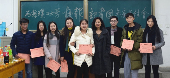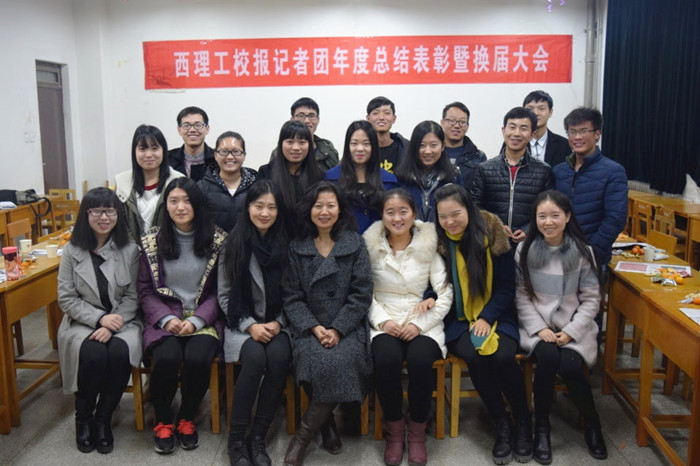 校报主编魏老师在讲话中首先祝贺9位新记者的加入,并祝贺新一届记者团团长副团长的就职;她感谢30位记者在一年时间里撰写了580篇各类文章,充实了校报网和校报,感谢李童阳王宝玲华晨三位团长,在他们的组织下,第八届读书观影有奖征文篇数首次突破400大关,影响力越来越强;感谢他们制作了记者团视频,使家的感觉更强了;创建了微信,使校报记者团再次向师生打开了一扇窗。魏老师说,校报2016年拟开设“基层党建”、“教改新思维”、“科研一线”栏目,希望新一届团长们在这方面动动脑筋;校报网栏目需要调整,可以做问卷调查,增加师生关注内容;微信力量要加强,内容以校报网为主,图文并茂,推出精品。