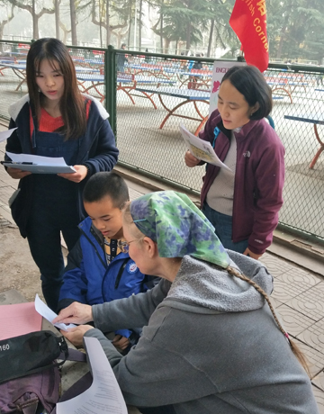 这次参加英语角的同学有14名,其中共有12名来自校研会英语部的研一学生。大家讨论热烈,吸引路人驻足围观,有2名大四印包学院的学生和1名理学院青年教师先后主动参与话题讨论,一名小学生在家长的陪同下也加入了讨论。外教Barbara十分高兴,她认为英语角需要的就是这种自由轻松的氛围——”you can go and you can back”。